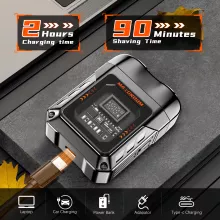 Equipped with a double ring arc head and a 360° floating design, this shaver adapts to every contour of your face for a close and comfortable shave. The 8500 RPM high-speed motor ensures fast, efficient grooming, while the LED smart digital display keeps you informed of battery life in real time. Fully rechargeable via USB Type-C, a 2-hour charge gives you up to 90 minutes of continuous shaving.