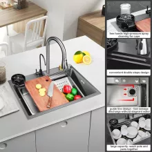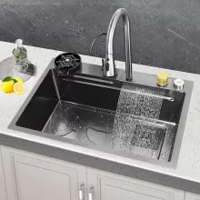 This sink isn’t just about good looks; it’s packed with features that enhance your daily kitchen tasks. The durable stainless steel ensures long-lasting performance, while the nano coating provides a sleek, easy-to-clean surface that resists scratches and stains. Its unique waterfall design not only adds a touch of elegance but also improves water drainage, making it highly practical for busy kitchens.