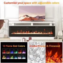 - Realistic Electric Fireplace: Enjoy adjustable flame effects with 12 color options and 5 brightness levels, creating the perfect ambiance for any mood or occasion.