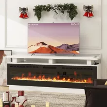 Transform your living room into a cozy retreat with the Modern Fireplace TV Stand, featuring a 70-inch electric fireplace and a sleek, contemporary design. This freestanding unit combines functionality and style, serving as a stunning centerpiece while providing warmth and entertainment options for your home. Perfect for movie nights, gatherings, or simply unwinding after a long day, this TV stand is a must-have for creating a welcoming and comfortable atmosphere.