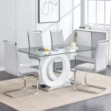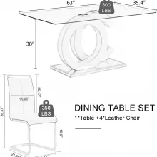 Elevate your dining space with this stunning modern glass dining table set. Designed to bring both functionality and elegance to your home, this set includes a 63-inch tempered glass dining table and four ergonomically designed PU leather chairs. Perfect for both family gatherings and casual meals, this set offers the ideal blend of style and comfort.