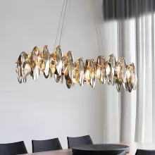 This chandelier is not just a light fixture; it’s a centerpiece for your space. Its smoky gray crystals create a luxurious yet understated elegance, while the wave-shaped design adds a touch of modern artistry. Whether hosting a dinner party or enjoying a quiet family meal, this chandelier enhances the atmosphere, making every moment special.