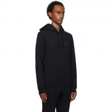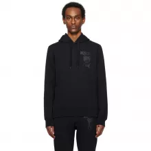 Featuring a classic black color, this hoodie is both versatile and striking. The drawstring hood ensures a customizable fit, while the logo printed at the chest brings an authentic Moschino touch. The rib-knit hem and cuffs create a snug, comfortable fit, enhancing the overall feel. With its dropped shoulders, the hoodie offers a relaxed, modern silhouette that’s perfect for a laid-back yet fashionable look.