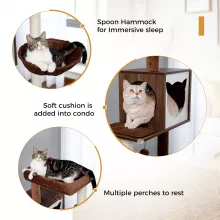 - Spacious and Comfortable: With multiple platforms, a hammock, and a condo, this cat tree offers plenty of spots for your cats to sleep, play, and rest.