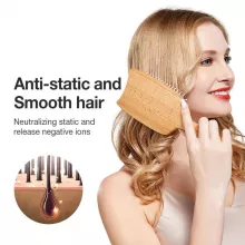 This hairbrush is an unsung hero in my everyday routine. The natural beech wood wide board design is not only visually appealing, but it also offers unique comfort and ease during use that I't found with other brushes. It glides my hair effortlessly, detangling without causing breakage or discomfort. What sets this brush apart though, is the gentle massage feature - it's like having a mini spa session every time I brush my hair! My scalp feels stimulated and refreshed after each use which has notably improved both the health and appearance of my locks.