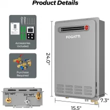 Crafted for convenience and durability, this tankless water heater is specifically designed for outdoor installation. Its sleek, compact dimensions of 26.2 inches by 17.1 inches by 7.1 inches make it easy to install on almost any exterior wall, saving valuable indoor space. With its robust DC fan, the unit stands strong against external wind and challenging weather conditions, ensuring reliable performance year-round.