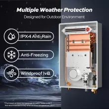 Experience total comfort with precise temperature control that adapts to every season. Thanks to advanced chip technology and water-gas adjustment functionality, this water heater maintains a stable temperature within a 1°F difference. Whether it’s a chilly winter morning or a balmy summer evening, your water temperature will always be just right.