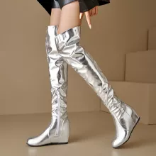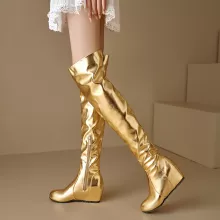 Unlike ordinary boots, these over-the-knee wedge styles combine bold glamour with true comfort. The shiny PU finish, oversized fit options, and handmade craftsmanship make them stand out in the crowd. They’re not just boots—they’re a statement piece that commands attention and celebrates fearless fashion.