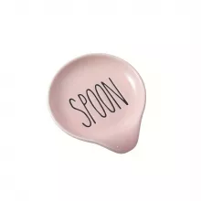 Pink Ceramic Spoon Rest – Cute Coffee Bar Holder with Letter Design (1 PCS)