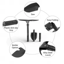 More than just a shovel, this tool combines six essential functions in one compact design. Use it as a shovel, hoe, saw, pickaxe, compass, and bottle opener. Whether you are clearing ground for a campfire, planting in your garden, digging your car out of snow, or cracking open a cold drink after a long hike, this tool has you covered.