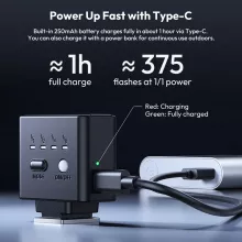 This portable flash packs a punch with GN8 flash power and adjustable brightness, delivering up to 375 flashes on a full charge. With ultra-fast recovery at 1/8 power, you can freeze every moment without missing a beat. It fully charges in about 1 hour via Type-C, and you can even power it on the go with a power bank—perfect for outdoor shoots and travel adventures.