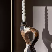 Elevate the ambiance of any room with this exquisite Portoro Natural Marble Candle Holder. Crafted from premium natural marble, this luxury stone sculpture is not only a functional piece but also a stunning work of art. Whether placed on a dining table, a fireplace mantel, or as part of a grand wedding setup, this candle holder adds a touch of sophistication and timeless beauty. The rich, dark hues of the Portoro marble create a striking contrast with the soft glow of a candle, perfect for setting the mood for intimate dinners, cozy evenings, or festive celebrations.