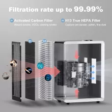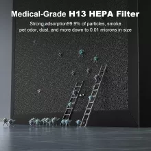 - H13 True HEPA Filter: Captures 99.9% of airborne particles as small as 0.3 microns, including dust, pollen, and smoke.