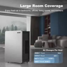 Transform your living space into a haven of fresh, pure air with this powerful air purifier designed for large rooms. With a coverage area of up to 4646 square feet, it’s perfect for homes, offices, schools, hospitals, and commercial spaces. Whether you’re tackling allergies, pet dander, asthma triggers, or smoke, this air purifier ensures cleaner air for healthier living. Its modern design combines efficiency with durability, making it an essential addition to your environment.