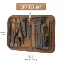 - 26 professional tools for complete nail, cuticle, and grooming care
