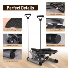 Built with independent hydraulic pistons, this stepper allows you to manually adjust resistance levels for a customized workout that fits your fitness goals and energy level. The twisting motion targets your **calves, glutes, thighs**, and **hip flexors**, while the **removable resistance bands** let you tone your arms, shoulders, and chest—all at once.