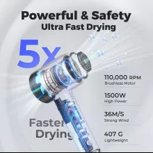• Ultra-fast drying with 110,000 RPM high-speed airflow