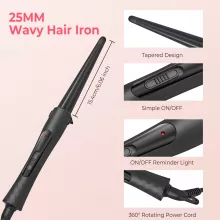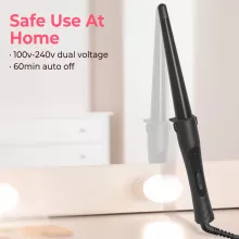 - Tourmaline ceramic barrel – protects hair, reduces static, and delivers smooth, shiny curls.