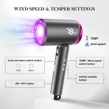 Powered by a high-speed 18,800 RPM motor, this blow dryer produces a strong 12m/s airflow that dries your hair in just 2–8 minutes, depending on thickness and length. The intelligent temperature control system prevents overheating, protecting your scalp and strands from heat damage while ensuring consistent performance every time you style.