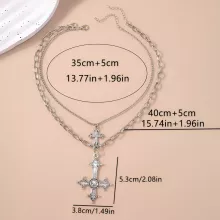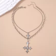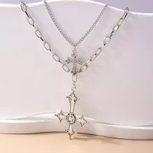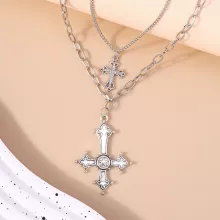 Crafted with a durable zinc alloy metal and polished to perfection, this necklace features a stylish link chain and a bold cross pendant. The layered structure gives depth and dimension, making it a versatile accessory that pairs effortlessly with dresses, casual tops, or even leather jackets. Its lightweight design ensures comfortable wear all day or night, while the classic cross shape brings a mix of elegance and edge.