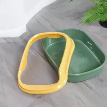 Crafted from high-quality plastic, this cat litter box is built to withstand daily use. Its sturdy construction ensures that it wonโt easily tip over, while the smooth surface makes it easy to clean, ensuring a hygienic environment for your pet. Available in a stylish blue or green color, this litter tray will fit seamlessly into any home decor.