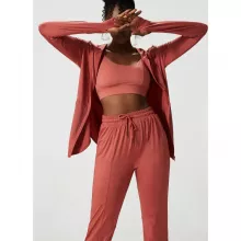 This jacket isn’t just about performance; it’s about enhancing your entire workout experience. The lightweight yet durable fabric feels soft against your skin, while the breathable design ensures you stay comfortable, no matter the activity. The hood provides extra coverage when you need it, and the thumb holes add a touch of functionality that runners and yogis will especially appreciate.