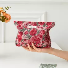 Unlike ordinary pouches, this bag combines practicality with style. The floral red rose pattern makes it feminine and fashionable, while the sturdy polyester construction ensures long-lasting use. Its versatility means you can use it not only as a cosmetic bag but also as a jewelry holder, travel pouch, or casual clutch.