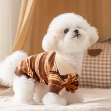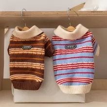 Crafted from high-quality polyester fiber, this sweater combines warmth with breathability, ensuring your dog stays cozy without overheating. The pullover design makes it easy to slip on and off, while the stretchy fabric provides a comfortable fit for active play or cuddly naps. Available in charming blue and brown shades, it brings a touch of timeless American retro fashion to your dog’s wardrobe.