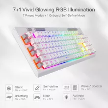 Create your own atmosphere with a true RGB backlight that offers endless color possibilities. Choose from 7 pre-set modes or save your own custom setups in 6 dedicated slots. Adjust brightness to your liking—from vibrant and glowing to completely off when you want to focus.