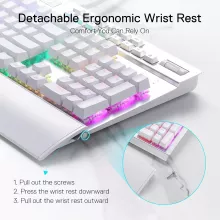 Built with an integrated wrist rest, this keyboard keeps you comfortable during long hours of gaming or typing. The mechanical switches are not only tactile and responsive but also durable, giving you consistent performance session after session.