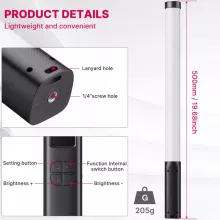This LED light wand is perfect for a wide range of applications, whether you’re creating stunning YouTube videos, shooting product photography, or enhancing your creative projects. Its full RGB color spectrum and adjustable color temperature ensure that you can achieve the perfect lighting for any occasion, from vibrant, colorful effects to subtle, professional lighting for portrait photography.