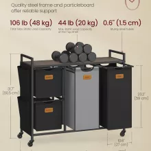 This laundry sorter combines practicality with smart design, making it a must-have for any home. Built with a strong steel frame and durable particleboard top, it holds up to 106 lb of laundry and essentials. The removable liners, crafted from water-resistant 600D Oxford fabric, make carrying and cleaning hassle-free. Thanks to the slim design, it fits perfectly in bathrooms, laundry rooms, or even closets.