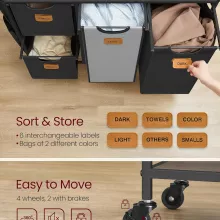 - Effortless Sorting: 4 baskets in two colors plus 6 customizable labels for easy separation of darks, lights, towels, and more.