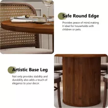 Round Dining Table with 2-Layer Storage Shelf and Wood Slide Door