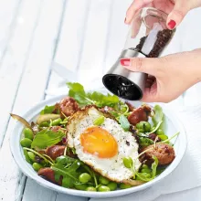 • Enhances flavor by grinding spices fresh on demand.