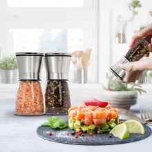 Salt and Pepper Grinder Set – 2pcs Adjustable Spice Mills with Glass Body