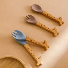 i absolutely love these utensils! they've got this cute giraffe shape that keeps my kiddo entertained at meal times 🦒