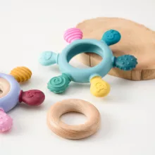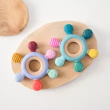 - Safe Materials: Crafted from BPA-free silicone and a natural wooden ring, this teether is safe for babies to chew on.