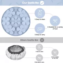 Crafted from 100% non-toxic, food-grade silicone, this slow feeder is as safe as it is durable. The anti-slip suction cups on the bottom ensure the mat stays in place, even during enthusiastic sniffing sessions. With its compact and portable design, you can easily roll up the mat for travel, making it a perfect companion for both home and on-the-go adventures.