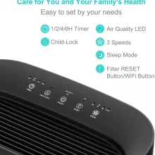 - Smart WiFi and App Control: Connect to the free app to monitor air quality, set schedules, and control the purifier remotely.