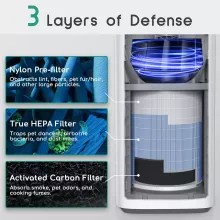 - Powerful Air Purification: Effectively removes airborne pollutants such as smoke, pet dander, pollen, and cooking odors.