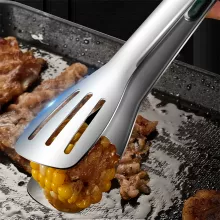 I cannot express enough how much I appreciate stainless steel food tongs. As someone who loves hosting barbecues, I've always struggled with flimsy tongs that would either break or cause me to drop food because they were too slippery. These tongs are anything but! They have a sturdy grip and do not slip at all, making it so much easier to flip and sausages on the grill. Not only that but they're also great for serving salad and bread during family dinners. The design is sleek and modern, which adds a nice touch to my kitchen utensils.