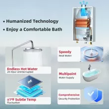 Say goodbye to cold showers and waiting for your water to heat up. This tankless natural gas water heater delivers a continuous flow of hot water, ensuring your household’s comfort 24/7. Designed for efficiency and durability, it’s perfect for families who demand instant, reliable hot water for multiple faucets and showers simultaneously. Compact, sleek, and wall-mounted, it saves precious space while offering superior performance.