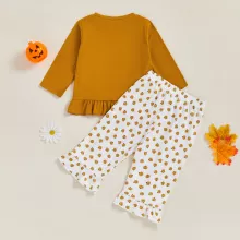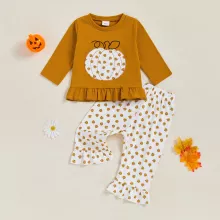 Get your little one ready for spooky season with this charming Halloween two-piece outfit. Designed for baby girls from 3 months up to 3 years, this set includes a pumpkin embroidery long sleeve shirt with a round neckline and ruffled hem, paired with comfortable elastic waist pants. Made with a soft cotton blend top and easy-care polyester pants, this outfit is gentle on delicate skin while allowing your toddler to move, play, and explore with ease.