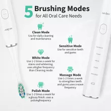 • Whitening Mode – polishes teeth for a brighter smile.