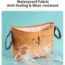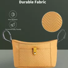 This stroller bag is thoughtfully designed with parents in mind. Crafted from durable synthetic fiber, it’s lightweight yet sturdy enough to hold everything you need. The organizer comes with multiple compartments, including a spacious main section, bottle holders, and extra side pockets to keep items neatly in place. Easy to hang with sturdy straps, it stays securely attached to your stroller without slipping.