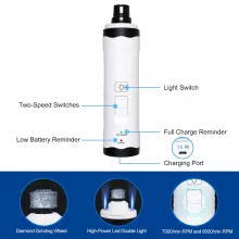 I'm truly impressed by this nail grinder. Its low noise operation keeps my dog relaxed while the diamond grinding wheel trims his nails smoothly without any discomfort. Plus, itβs USB rechargeable which makes things even more convenient!