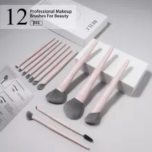- 12/15 versatile brushes for face, eyes, brows, and lips