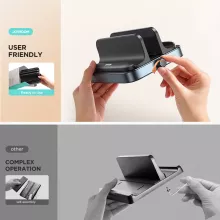 This multi-purpose stand is built for convenience and durability. It features a 3-in-1 design that can hold laptops, tablets, and smartphones. The adjustable width from 0.4 to 1.6 inches allows a perfect fit for most devices. Its mechanical knob adjustment ensures precise control, while the stable base provides extra balance and prevents tipping. The silicone padding offers full protection against scratches and keeps your devices steady without slipping.