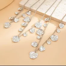 This necklace set is more than just jewelry—it’s a statement. With its versatile design, you can wear the pieces together for a bold layered look or individually for a subtle touch of sophistication. The warm gold finish adds a glamorous edge, while the irregular pendants bring a unique artistic feel. Lightweight yet striking, this set is designed to complement any outfit effortlessly.